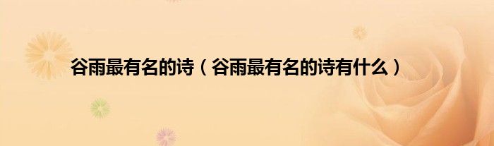 欢迎观看本篇文章,小升来为大家解答以上问题。谷雨最有名的诗,谷雨最有名的诗有什么很多人还不知道,现在让我们一起来看看吧!