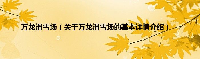 本文关于万龙滑雪场的基本详情介绍就讲解完毕,希望对大家有所帮助。