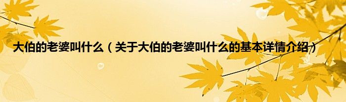 本文关于大伯的老婆叫什么的基本详情介绍就讲解完毕,希望对大家有所帮助。