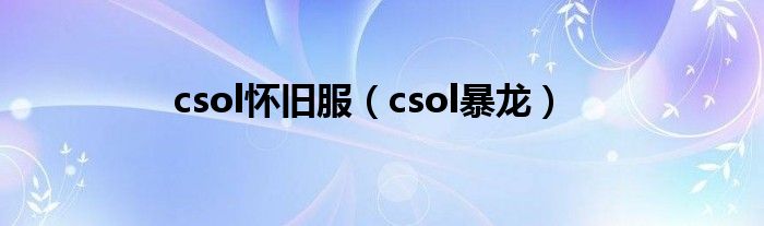 大家好,小问来为大家解答以上问题。csol怀旧服,csol暴龙这个很多人还不知道,现在让我们一起来看看吧!