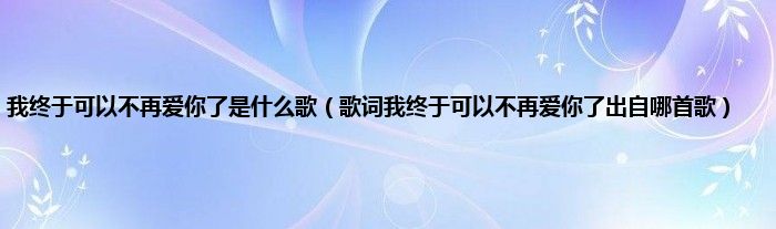 欢迎观看本篇文章,小升来为大家解答以上问题。我终于可以不再爱你了是什么歌,歌词我终于可以不再爱你了出自哪首歌很多人还不知道,现在让我们一起来看看吧!