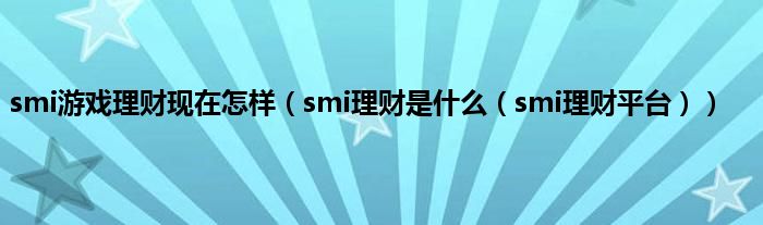 大家好,综合小编来为大家讲解下smi游戏理财现在怎样,smi理财是什么,smi理财平台这个很多人还不知道,现在让我们一起来看看吧!