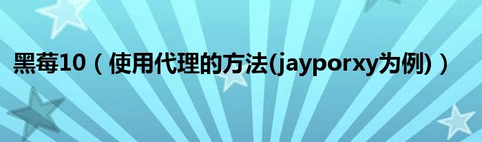 大家好,综合小编来为大家讲解下黑莓10,使用代理的方法(jayporxy为例)这个很多人还不知道,现在让我们一起来看看吧!