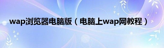 大家好,综合小编来为大家讲解下wap浏览器电脑版,电脑上wap网教程这个很多人还不知道,现在让我们一起来看看吧!