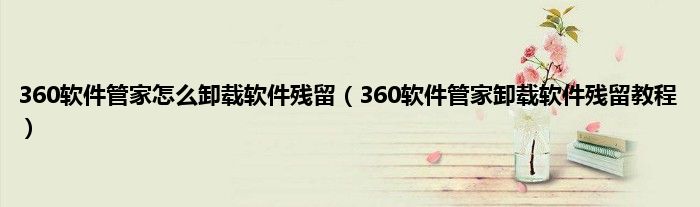 大家好,综合小编来为大家讲解下360软件管家怎么卸载软件残留,360软件管家卸载软件残留教程这个很多人还不知道,现在让我们一起来看看吧!