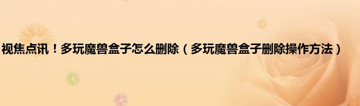 大家好,综合小编来为大家讲解下视焦点讯!多玩魔兽盒子怎么删除,多玩魔兽盒子删除操作方法这个很多人还不知道,现在让我们一起来看看吧!
