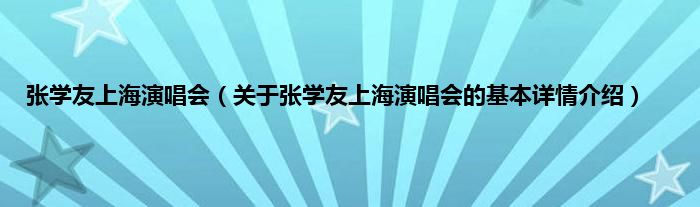 本文关于张学友上海演唱会的基本详情介绍就讲解完毕,希望对大家有所帮助。