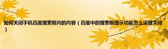 大家好,综合小编来为大家讲解下如何关闭手机百度搜索框内的内容,百度中的搜索框提示功能怎么设置关闭这个很多人还不知道,现在让我们一起来看看吧!
