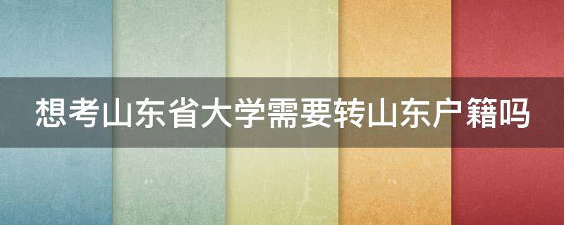 想考山东省大学不需要转山东户籍,携带身份证原件及复印件、学校录取通知书、高考准考证、成绩单、户口簿去学校即可。户口,是指国家主管户政的行政机关所制作的,用以记载和留存住户人口的基本信息的法律文书。户籍是对自然人按户进行登记并予以出证的公共证明簿,记载的事项有自然人的姓名、出生日期、亲属、婚姻状况等。它是确定自然人作为民事主体法律地位的基本法律文件,城市和设有公安派出所的镇,以公安派出所管辖区为户口管辖区。