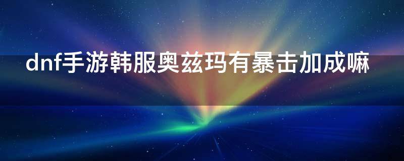 dnf手游韩服奥兹玛有暴击加成。奥兹玛宠物跟装备都有暴击一千四。《地下城与勇士》(Dungeon&Fighter,简称DNF)是由韩国(Neople)开发、中国内地由腾讯游戏代理运营的动作角色扮演ARPG格斗网游。该游戏是一款2D卷轴式横版格斗过关网络游戏,大量继承了众多家用机、街机2D格斗游戏的特色。以任务引导角色成长为中心,结合副本、PVP、PVE为辅,与其他网络游戏同样具有装备与等级的改变,并拥有共500多种装备道具。每个人物有10个道具装备位置,在游戏中可以允许最多4个玩家进行组队挑战关卡,同样也可以进行4对4的PK。