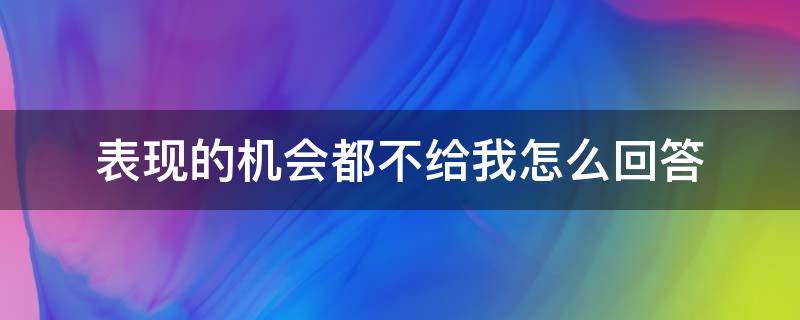 表现的机会都不给我可以回答:机会都是靠自己去争取的,只要你真心实意,我相信你会等到机会,关键是你自己不放弃,有信心把这件事情做好。机会是指具有时间性的有利情况,或出现了新的选择。机会不是梦想着就能到来,机会也是需要自己寻找和争取的,天下不会无缘无故地掉馅饼,所以人们需要去创造条件。机会来的时候,千万不要等着机会对自己伸出手,而是要自己伸出手去抓住,因为机会是无意识的,而自己却是有思维的。
