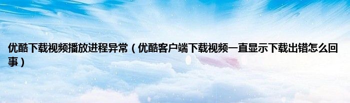 大家好,综合小编来为大家讲解下优酷下载视频播放进程异常,优酷客户端下载视频一直显示下载出错怎么回事这个很多人还不知道,现在让我们一起来看看吧!