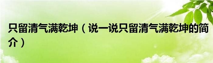 只留清气满乾坤(说一说只留清气满乾坤的简介)