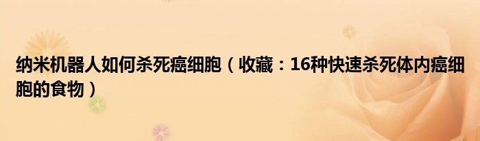 大家好,乐天来为大家解答以下的问题,纳米机器人如何杀死癌细胞,收藏:16种快速杀死体内癌细胞的食物很多人还不知道,现在让我们一起来看看吧!