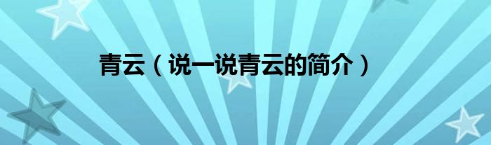 夏弥来为大家解答以下的问题,青云,说一说青云的简介,现在让我们一起来看看吧!