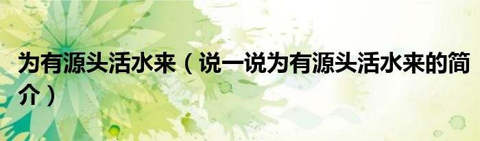 为有源头活水来(说一说为有源头活水来的简介)