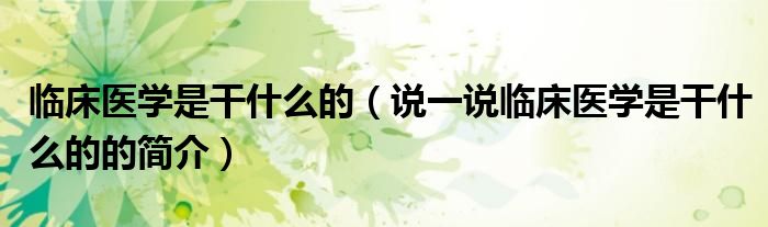 夏弥来为大家解答以下的问题,临床医学是干什么的,说一说临床医学是干什么的的简介,现在让我们一起来看看吧!