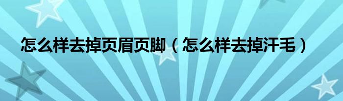 大家好,乐天来为大家解答以下的问题,怎么样去掉页眉页脚,怎么样去掉汗毛很多人还不知道,现在让我们一起来看看吧!