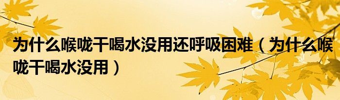 大家好,乐天来为大家解答以下的问题,为什么喉咙干喝水没用还呼吸困难,为什么喉咙干喝水没用很多人还不知道,现在让我们一起来看看吧!