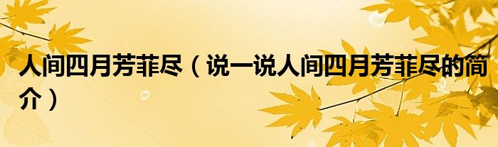 夏弥来为大家解答以下的问题,人间四月芳菲尽,说一说人间四月芳菲尽的简介,现在让我们一起来看看吧!