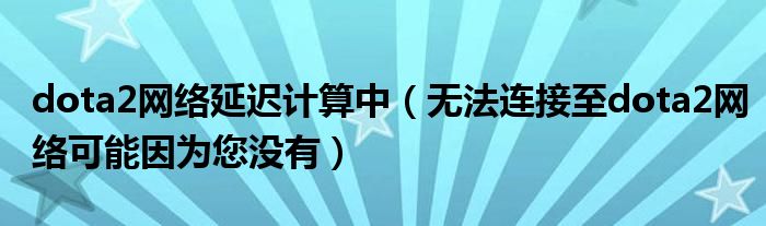关于dota2网络延迟计算中,无法连接至dota2网络可能因为您没有这个很多人还不知道,今天菲菲来为大家解答以上的问题,现在让我们一起来看看吧!