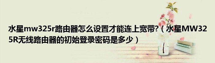 关于水星mw325r路由器怎么设置才能连上宽带?,水星MW325R无线路由器的初始登录密码是多少这个很多人还不知道,今天菲菲来为大家解答以上的问题,现在让我们一起来看看吧!