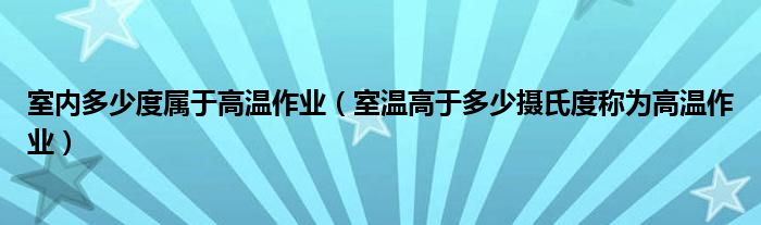 关于室内多少度属于高温作业,室温高于多少摄氏度称为高温作业这个很多人还不知道,今天菲菲来为大家解答以上的问题,现在让我们一起来看看吧!