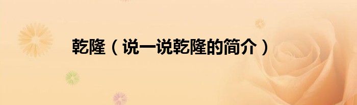夏弥来为大家解答以下的问题,乾隆,说一说乾隆的简介,现在让我们一起来看看吧!