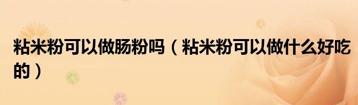 关于粘米粉可以做肠粉吗,粘米粉可以做什么好吃的这个很多人还不知道,今天菲菲来为大家解答以上的问题,现在让我们一起来看看吧!