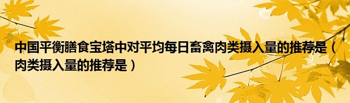 关于中国平衡膳食宝塔中对平均每日畜禽肉类摄入量的推荐是,肉类摄入量的推荐是这个很多人还不知道,今天菲菲来为大家解答以上的问题,现在让我们一起来看看吧!