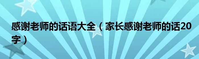 大家好,乐儿来为大家解答以下问题,感谢老师的话语大全,家长感谢老师的话20字很多人还不知道,现在让我们一起来看看吧!