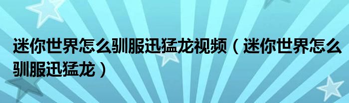 关于迷你世界怎么驯服迅猛龙视频,迷你世界怎么驯服迅猛龙这个很多人还不知道,今天菲菲来为大家解答以上的问题,现在让我们一起来看看吧!