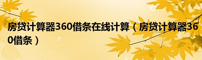 关于房贷计算器360借条在线计算,房贷计算器360借条这个很多人还不知道,今天菲菲来为大家解答以上的问题,现在让我们一起来看看吧!