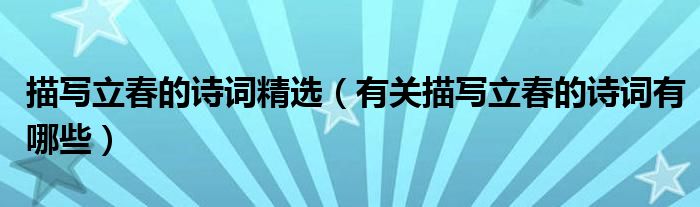 大家好,乐儿来为大家解答以下问题,描写立春的诗词精选,有关描写立春的诗词有哪些很多人还不知道,现在让我们一起来看看吧!