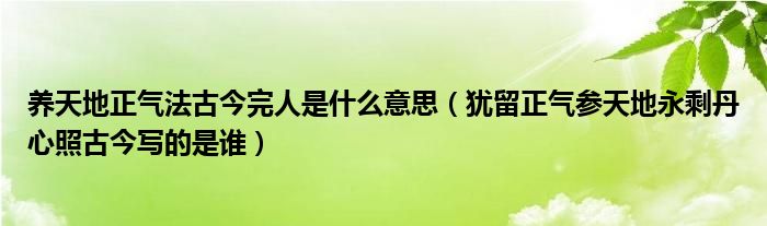 大家好,乐儿来为大家解答以下问题,养天地正气法古今完人是什么意思,犹留正气参天地永剩丹心照古今写的是谁很多人还不知道,现在让我们一起来看看吧!