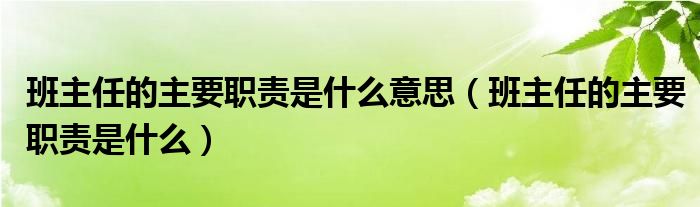 关于班主任的主要职责是什么意思,班主任的主要职责是什么这个很多人还不知道,今天菲菲来为大家解答以上的问题,现在让我们一起来看看吧!