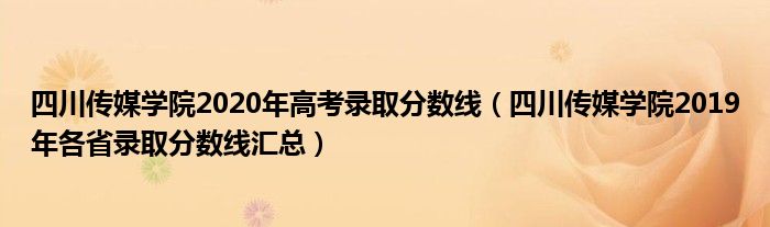 大家好,乐儿来为大家解答以下问题,四川传媒学院2020年高考录取分数线,四川传媒学院2019年各省录取分数线汇总很多人还不知道,现在让我们一起来看看吧!