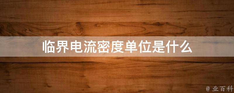 临界电流密度的单位通常是安培/平方米。临界电流密度是指在超导材料中,当电流密度超过该临界值时,材料将失去超导性质变为正常导体。这个临界值是超导材料的关键参数,决定了材料的超导能力和性能。