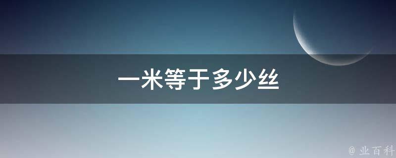 一米等于10万丝。一丝为0.01毫米,一米等于1000毫米,因此等于10万丝。米常用于测量距离和长度,它的符号是m。一米等于100厘米或1000毫米。它是国际单位制中的基本长度单位,在物理学、工程学、建筑学、地理学以及日常生活中广泛使用。