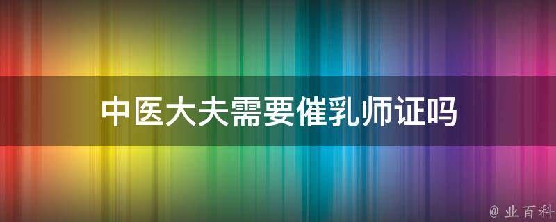 中医大夫需要催乳师证。在中国,中医大夫需要获得催乳师证才能从事催乳工作。催乳师证是专门针对从事乳腺保健、乳腺按摩和母乳喂养指导等方面的专业人员颁发的证书。持有催乳师证的中医大夫可以提供适当的乳腺按摩和其他相关服务,以帮助产妇增加母乳分泌,解决哺乳过程中的问题。