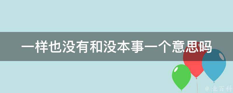 一样也没有和没本事不是一个意思。一样也没有通常以肯定的语气使用,表示某人或某事物在某方面没有能力或效果。而没本事常用于口语和非正式场合,通常带有一定的否定或讽刺语气,强调对某人的批评或嘲笑。例如:他连基本的数学都不会,真是没本事。