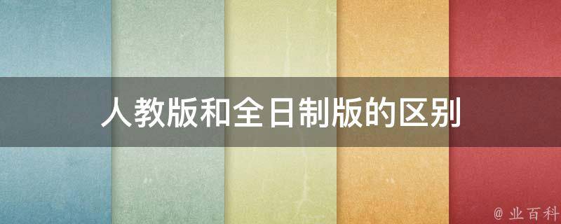 1、出版社和教材版本:人教版指的是由人民教育出版社出版的教材版本,而全日制版是一个广义的概念,表示面向全日制学校使用的教材版本,可以由不同的出版社出版。