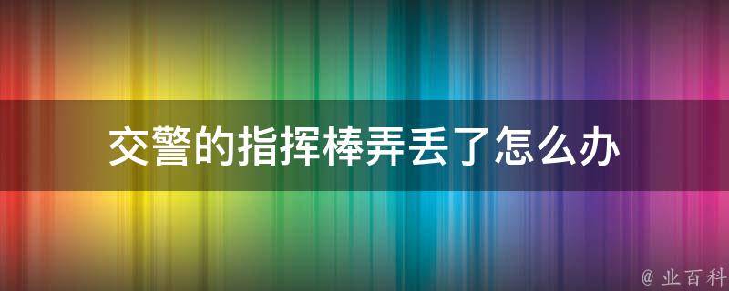 2、挂失登记:与相关部门联系,例如当地交警部门,进行指挥棒的挂失登记。提供丢失的详细信息和相关证明,以便他们能够追踪和记录丢失的指挥棒。