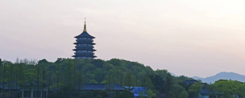 杭州西湖中的雷峰塔是吴越国王钱俶为了祈求国泰民安,于北宋太平兴国二年在西湖南岸夕照山上建造的。雷峰塔主体为平面八角形体仿唐宋楼阁式塔,各层盖铜瓦,转角处设铜斗拱,飞檐翘角,总高71.679米,总占地面积3133平方米,总建筑面积为6089平方米;塔身对径28米,边长11米,周长88米,塔底为原雷峰塔遗址。