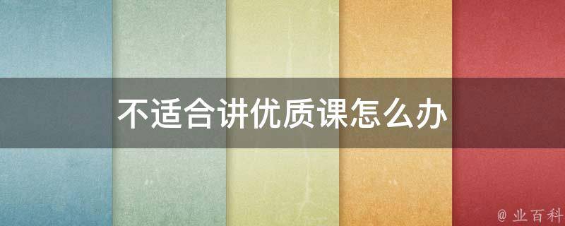 1、自我评估:首先,仔细评估课程或教学内容的内容和目标,以确定其中的潜在问题或不足之处。确定是什么原因导致您认为该课程不适合讲优质课,可能是教材不够精选、教学方法不够有效、课程结构不明确等。确保您对课程的整体理解。