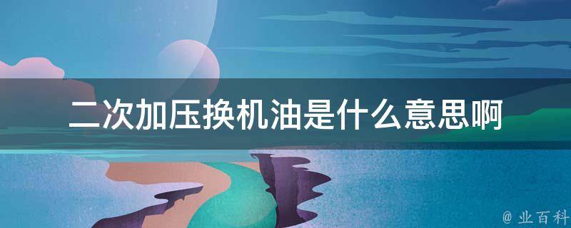 二次加压换机油是什么意思啊