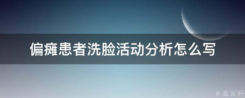 1、功能障碍:考虑患者由于偏瘫而导致的相关功能障碍,如肌力减退、肌肉协调障碍、感觉异常等。这些功能障碍可能会影响患者的洗脸能力和技巧。