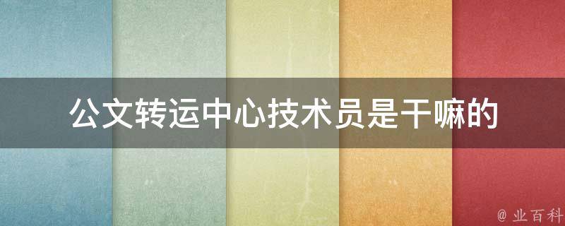 1、系统维护和支持:公文转运中心通常会使用电子化系统来处理和管理公文,技术员负责确保系统的正常运行和稳定性,包括维护、升级和修复系统中的技术问题。