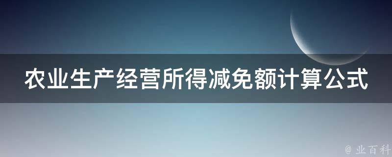 农业生产经营所得减免额计算公式为:减免额=应纳税所得额*适用减免税率。其中,应纳税所得额是农业生产经营户的收入减去相关扣除后得到的应纳税所得金额。适用减免税率则是根据国家和地方税收政策的规定确定的,不同地区和不同情况下可能存在差异。