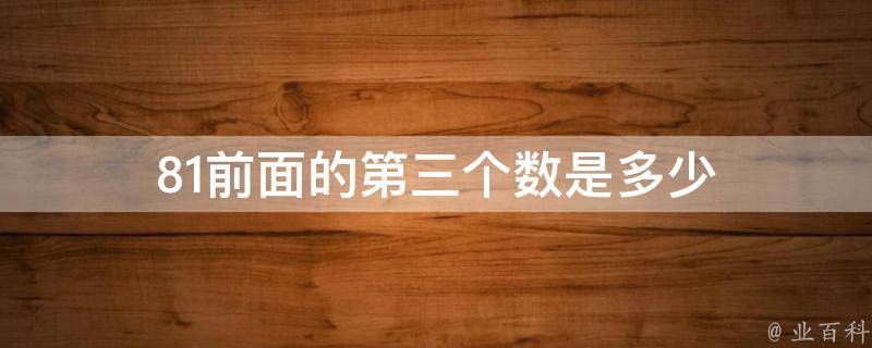 81前面的第三个数是78。81前面的数分别是80、79、78、77等,78在第三位,因此是78。81是80与82之间的自然数,既是一个奇数,也是一个平方数,9*9=81。其倒数可称为缺8数。它还是日本的国际电话区号。